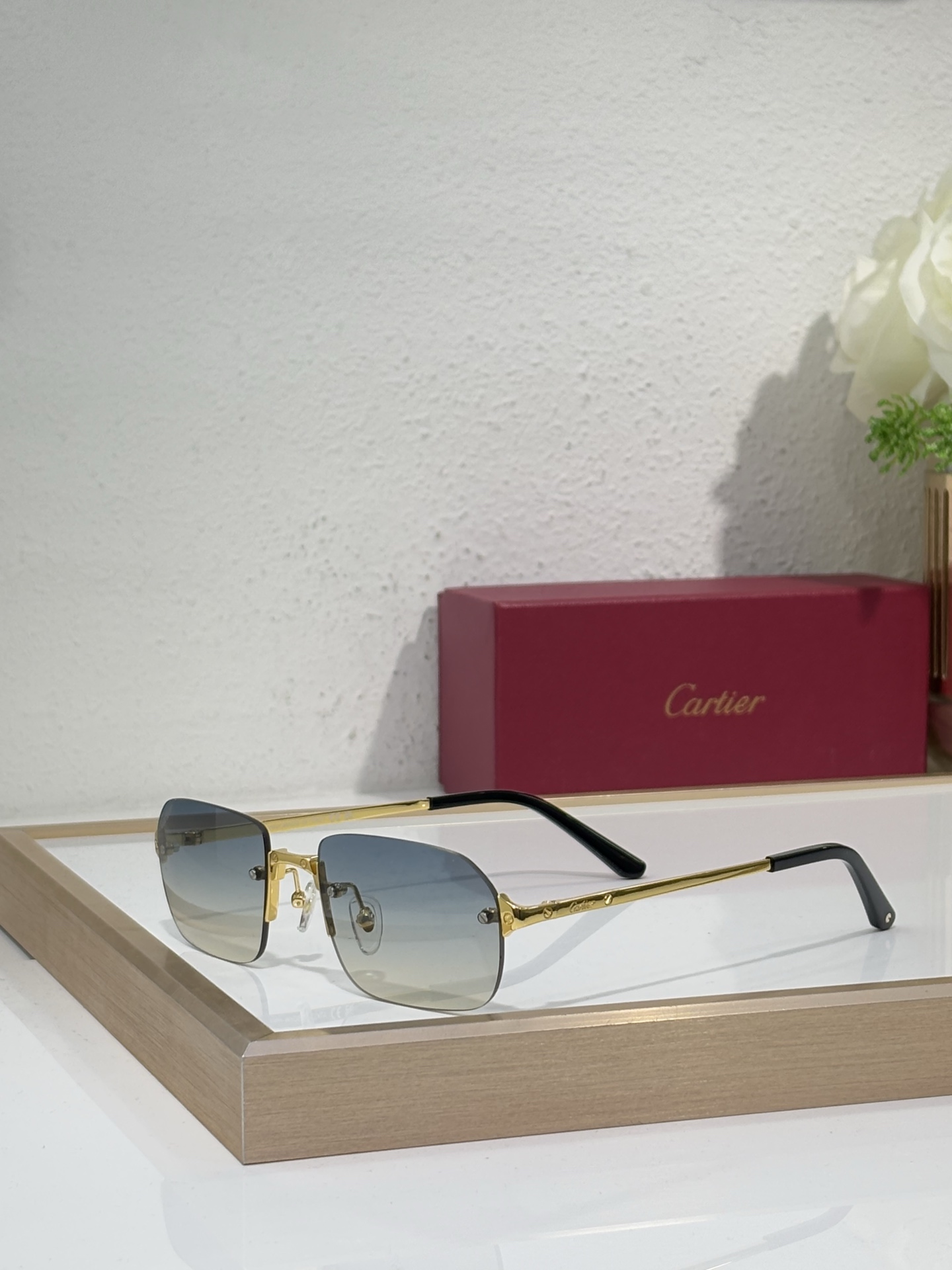 Cartier CT0544S High Quality Rectangle Rimless Sunglasses Women Men 1:1 Unisex