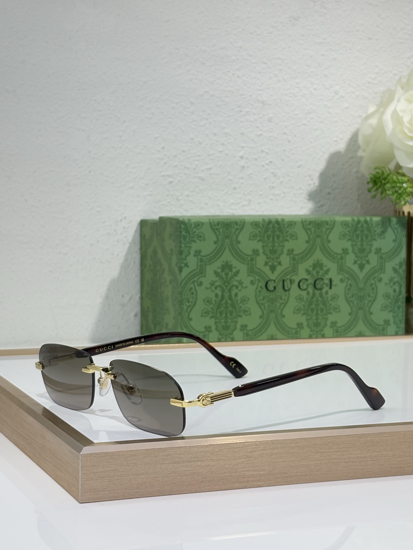 GUCCI GG1221S New High-Quality Fashionable Aesthetically Pleasing Frameless Rectangular SUNGLASSES Women Men
