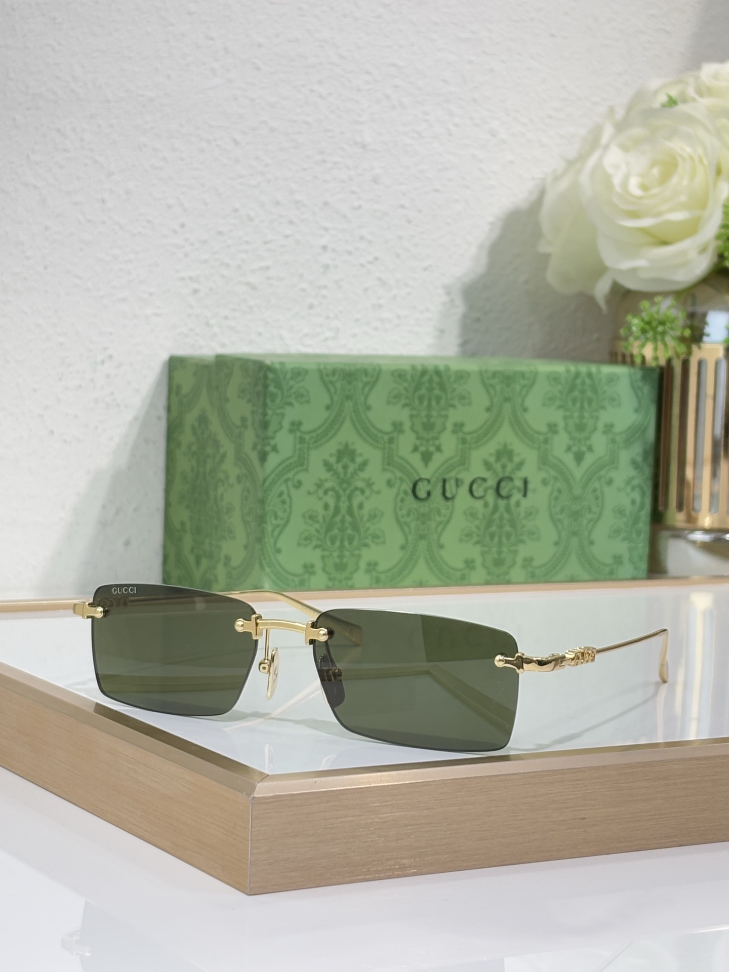 GUCCI GG1941S New High-Quality Fashionable Aesthetically Pleasing Rectangular Metal frameless SUNGLASSES Women
