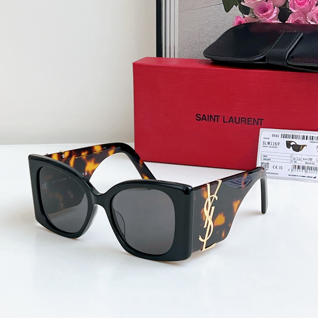 SAINT LAURENT SL M119/F Fashionable High-quality Sunglasses Metal Nose Pads Or Sheet Nose Pads Large Temple Logo